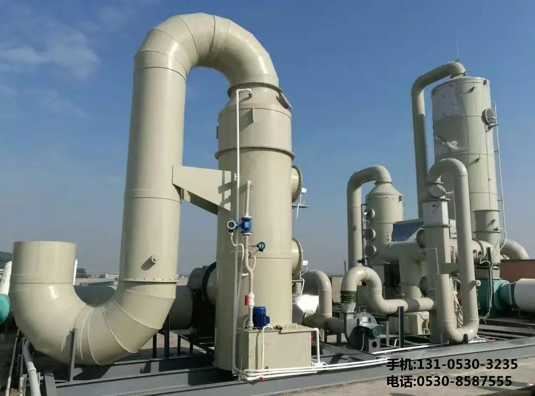 3. **化學(xué)反應(yīng)**:吸收塔內(nèi)的堿性吸收液(如氫氧化鈉溶液)與酸性氣體(如氯化氫、硫酸霧等)發(fā)生化學(xué)反應(yīng),將酸性物質(zhì)轉(zhuǎn)化為無(wú)害或低害的物質(zhì),從而達(dá)到凈化效果。